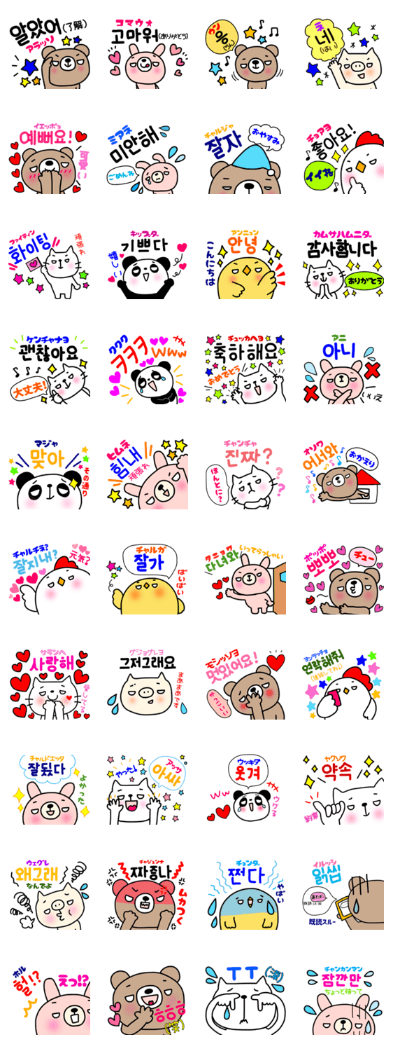 韓国語を話す少し目つきの悪い動物たち Lineクリエイターズスタンプ Stamplist